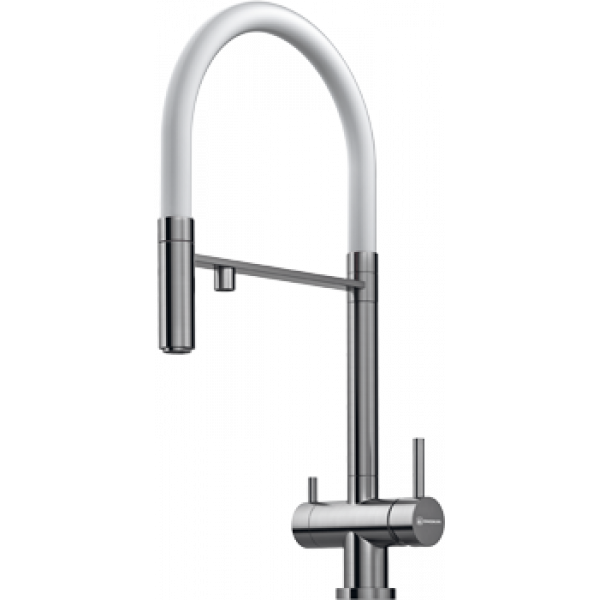 Смеситель Omoikiri Kanto-Bn-Wh Латунь/Нерж. Сталь/Белый Гибкий Шланг