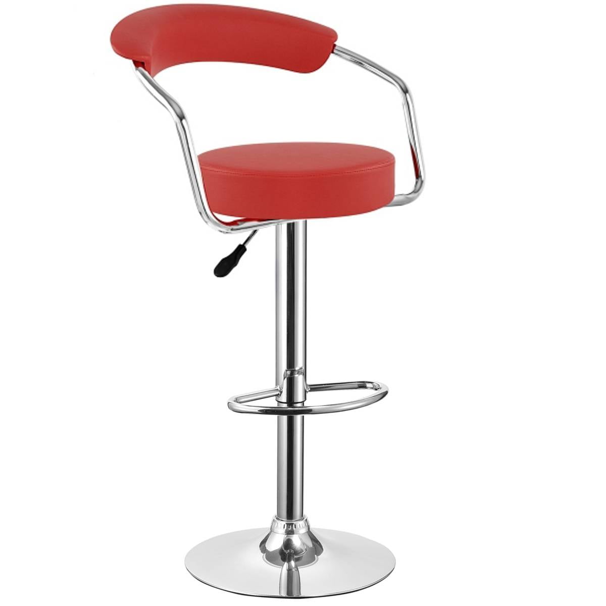 Барный стул со спинкой, хромированными подлокотниками и круглым сиденьем. Крутится вокруг своей оси, имеет газ-лифт.