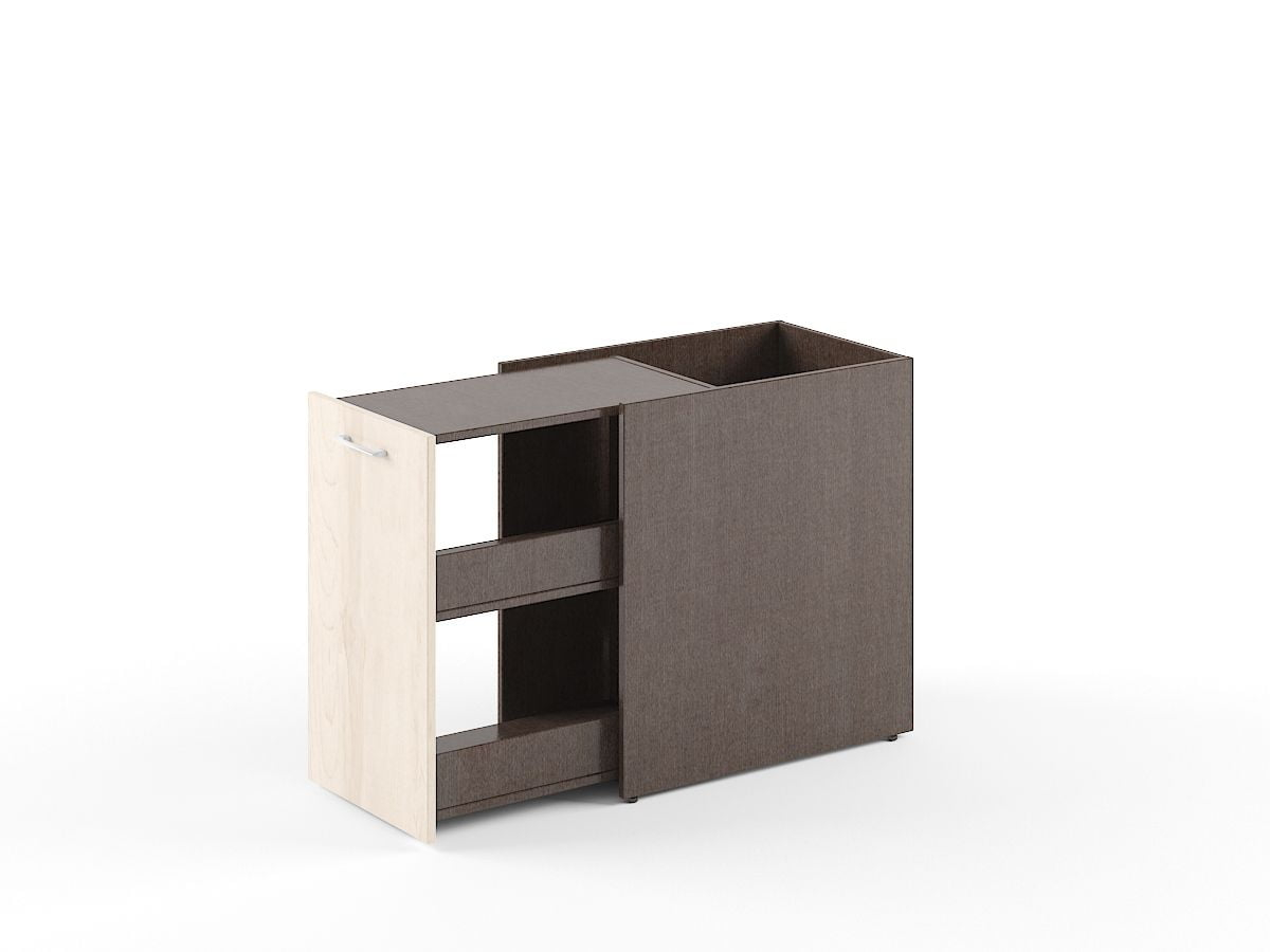 Из ЛДСП т.18мм., ручка-скоба. Без топа, необходимо покупать полку XOS 700.